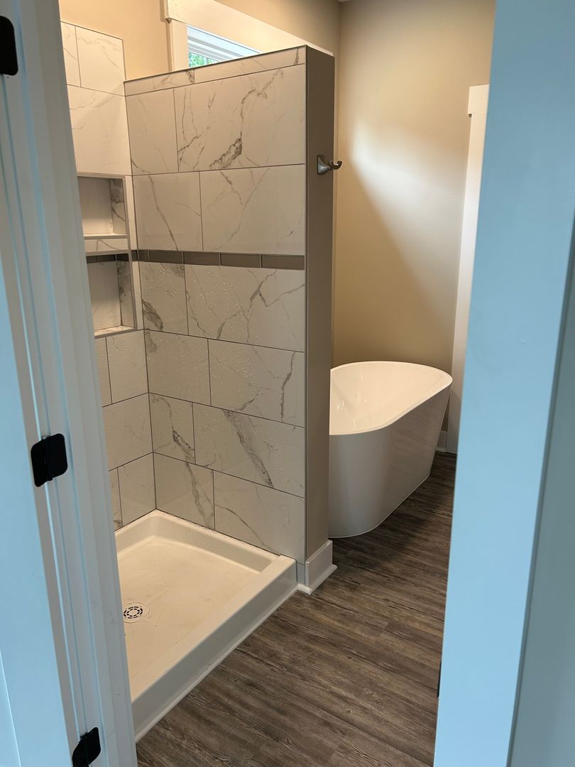 Master Bedroom: Located on the main floor with a beautiful en-suite bathroom featuring a soaker tub and a spacious, modern shower.
